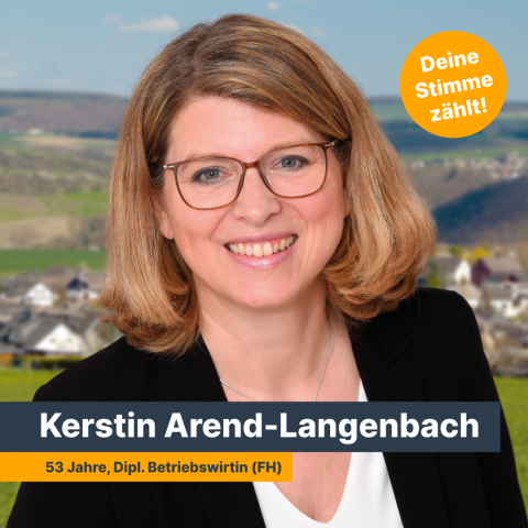 Ich bin Kerstin Arend-Langenbach, Dipl.-Betriebswirtin (FH), selbstständig im unserem Familienunternehmen tätig, 53 Jahre alt, verheiratet und habe mit meinem Mann zwei gemeinsame Kinder. Seit meiner Jugend engagiere ich mich kommunalpolitisch. Heute stehe ich dem CDU Stadtverband St. Goar vor und gehöre dem Stadtrat sowie dem Haushalts- und dem Ausschuss für Stadtmanagement, Tourismus, Kultur und Buga 2029 an. Ich engagiere mich leidenschaftlich in der katholischen Kirche, als Vorstandsmitglied im TuS Werlau und bei den Landfrauen. Mit meinem Heimatort Werlau bin ich sehr verbunden. Mein ganzer Einsatz gilt der Stärkung unserer Gemeinschaft und der Förderung unserer Traditionen, wie z. B. dem Hansenorden.